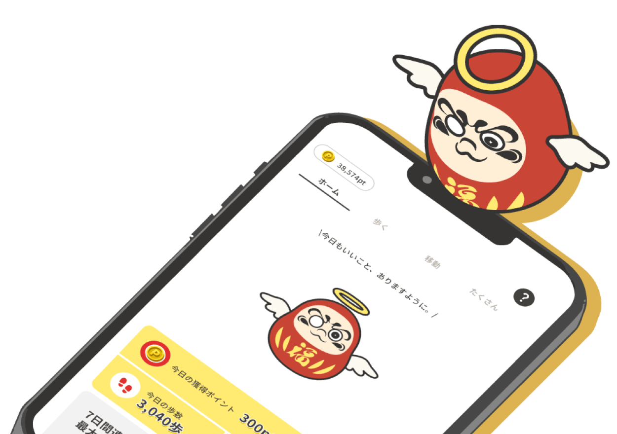応募ポイントは歩く、移動、ゲーム、ミッション等、様々な方法で獲得できるよ!